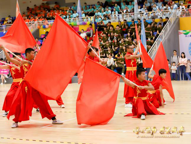 緊接著,鼓手和旗手開場為整個運動會的運動員加油助威,把運動會推向了高潮。
