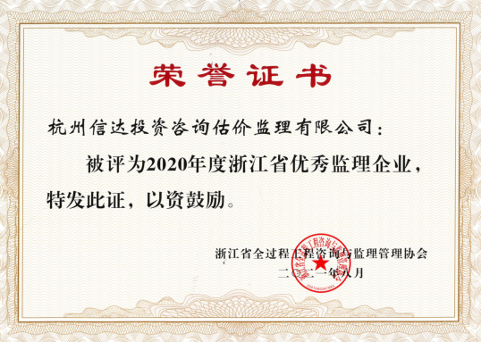 8月31日,浙江省全過程工程咨詢與監理管理協會公布了2020年度浙江省優秀監理企業和優秀監理人員的獲獎名單。全省共有56家企業評為浙江省優秀監理企業、323人評為省優秀總監理工程師、327人評為省優秀監理工程師。我公司再次被評為2020年度浙江省優秀監理企業,王濟義等6人被評為省優秀總監理工程師,袁斌被評為省優秀監理工程師。